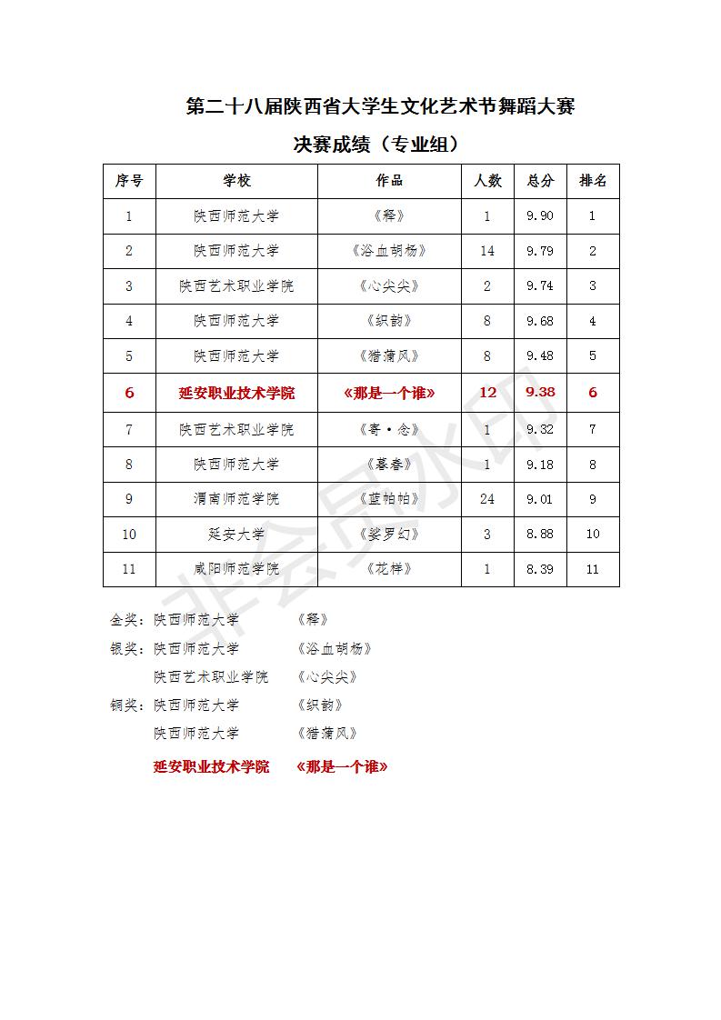 第二十八届陕西省大学生文化艺术节舞蹈大赛由中共陕西省委高教工委、共青团陕西省委、陕西省学生联合会联合举办,陕西师范大学承办。2018年11月6日,在陕西师范大学长安校区终南山音乐厅参加决赛。本次大赛由全省42个大学及职业院校参加,共选送74个舞蹈作品参赛,评选出36个优秀作品进入决赛。由我系赵涛老师编创,2016级白雨纯等12名同学参演的舞蹈作品《那是一个谁》经过激烈竞争,荣获专业组铜奖。