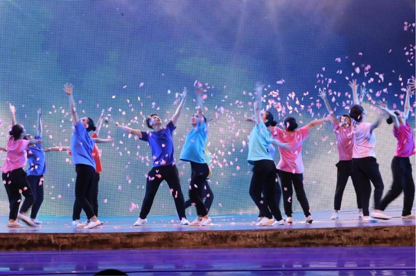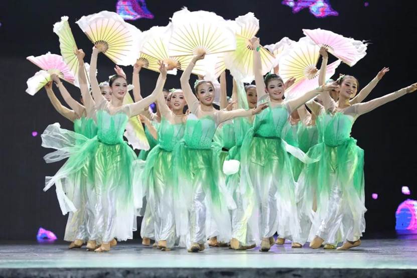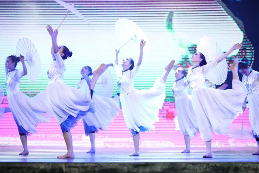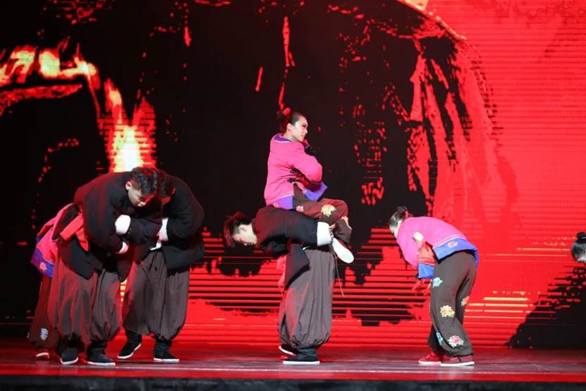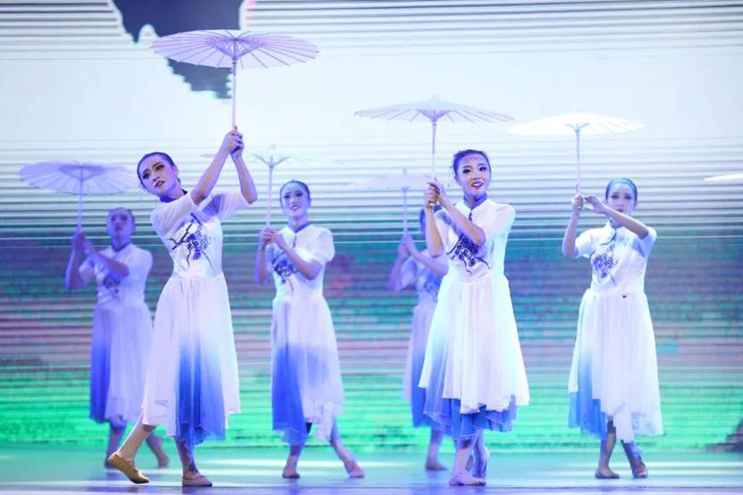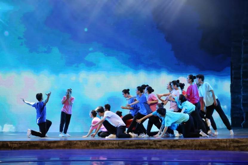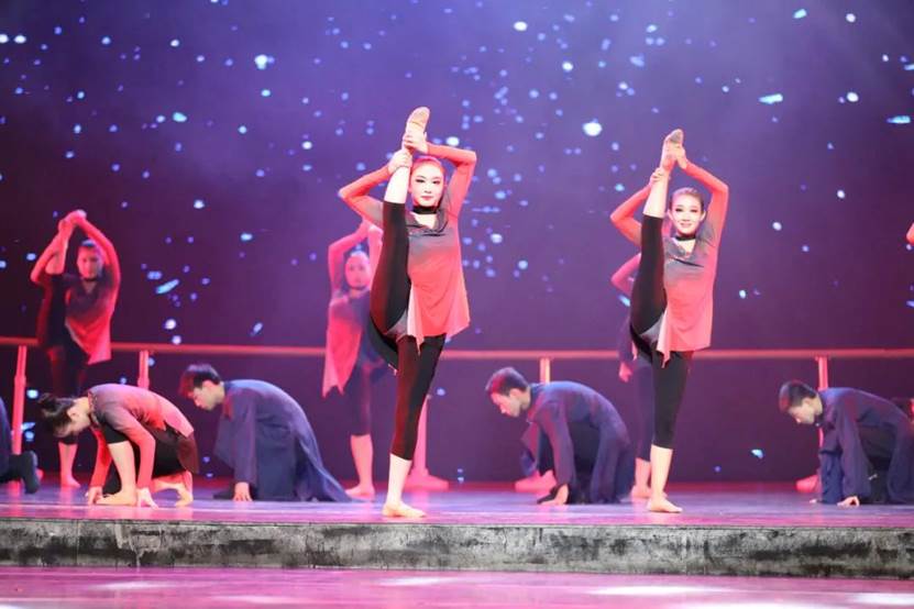 下篇《绽放吧青春》,由群舞《寒山远黛》《我等你》《英雄》《那是一个谁》《茉莉花》《信天游》《鼓舞生声》,双人舞《无题》等剧目组成。艺术系剧目团队老师从主题选材、艺术表现、团队协作、课程思政等方面经过反复打磨,把一个个生动鲜活的剧目呈现给观众。用思政元素讲述抗日英雄故事,使人们不忘历史,牢记革命英雄,珍惜今天幸福生活;用安塞腰鼓展显雄壮陕北;用信天游诉说高原人民不屈不挠精神等等。同学们或雄壮有力或婀娜多姿无不倾情出演。形象生动的肢体语言,高难度的武功技巧,诠释出最富活力的青春姿态。整场演出精彩纷呈,高潮不断,为全体观众奉献了一场视听盛宴。