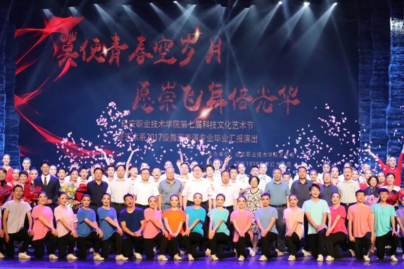 7月7日,延安职业技术学院艺术系第七届科技文化艺术节暨2017级舞蹈表演专业毕业汇报演出在枣园1938东方红大剧院举行。学校党委书记呼世杰、院长全卫强等在家校级领导,各处(室)系(院、部、中心)及附属机构负责人,师生代表,学生家长,特邀嘉宾共同观看演出。