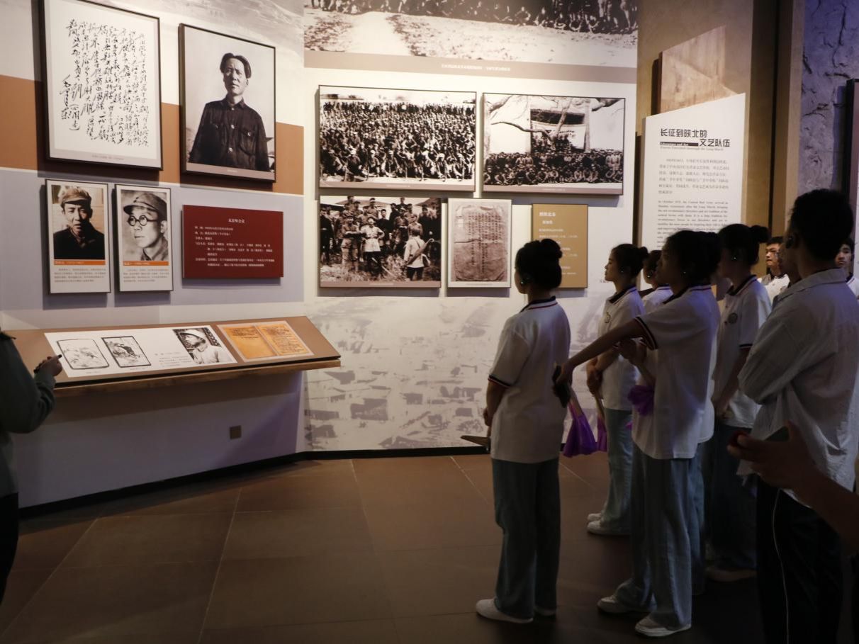 在鲁艺文艺纪念馆,师生们通过珍贵的史料和艺术作品,重温了革命文艺工作者的奋斗历程。泛黄的手稿、斑驳的乐器和生动的木刻版画,清晰地记录着那段“文艺为人民”的峥嵘岁月。师生们在延安文艺座谈会精神展区前驻足良久,深入体会“艺术要扎根人民、服务人民”的深刻内涵。