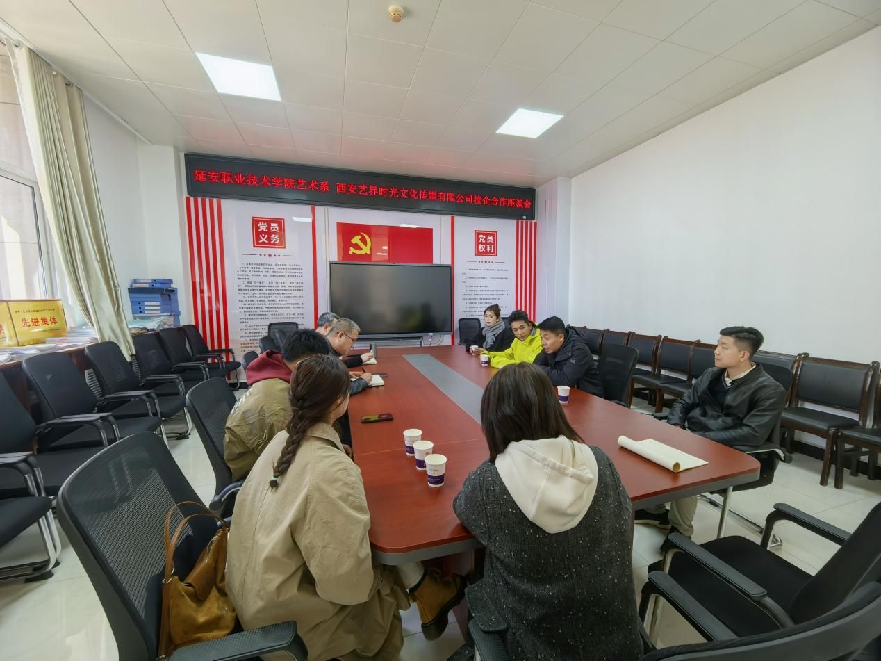 3月19日下午,西安艺界时光文化传媒有限公司副总经理续强一行5人到我院艺术系考察交流。艺术系主任同宇,副主任冯浪及教学科、学生科、教研室相关负责人和骨干教师参加了本次交流活动。